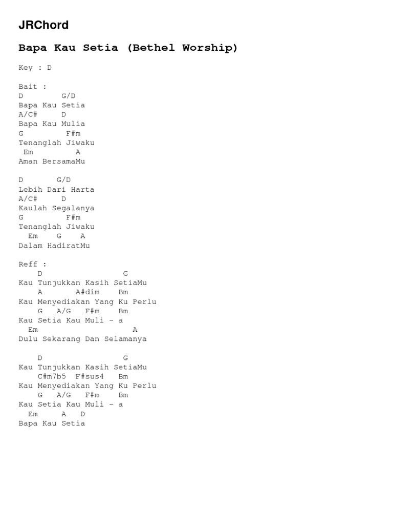 Bacaan doa majlis yang mudah dan ringkas. All I need is You. Chord Sperti Bapa Sayang AnakNya Jeffry S Tjandra Bait.